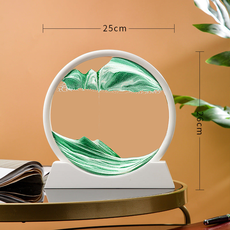✨Een decoratief kunstwerk dat telkens een nieuw zandlandschap vormt wanneer je het draait. Het zand stroomt langzaam door een heldere vloeistoflaag, waardoor unieke patronen ontstaan die nooit hetzelfde zijn. Gemaakt van transparant glas en stevig kunststof, is het zowel duurzaam als stijlvol. Ideaal voor op je bureau, in de woonkamer of als rustgevend cadeau. Het vertraagt je ademhaling, ontspant je ogen en brengt een moment van stilte in je dag.✨